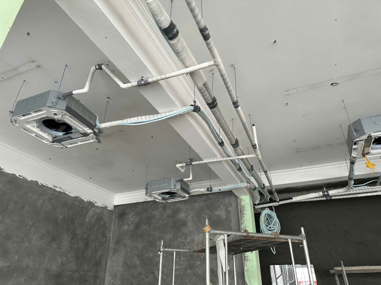 Hơi nước trong không khí gặp ống lạnh sẽ ngưng tụ thành giọt, thấm qua trần thạch cao gây ố vàng, ẩm mốc. Tại các công trình do ACHANOI thực hiện, chúng tôi luôn ưu tiên sử dụng ống nhựa PVC cứng chất lượng cao và bọc bảo ôn tối thiểu 10mm cho các đoạn ống đi âm.