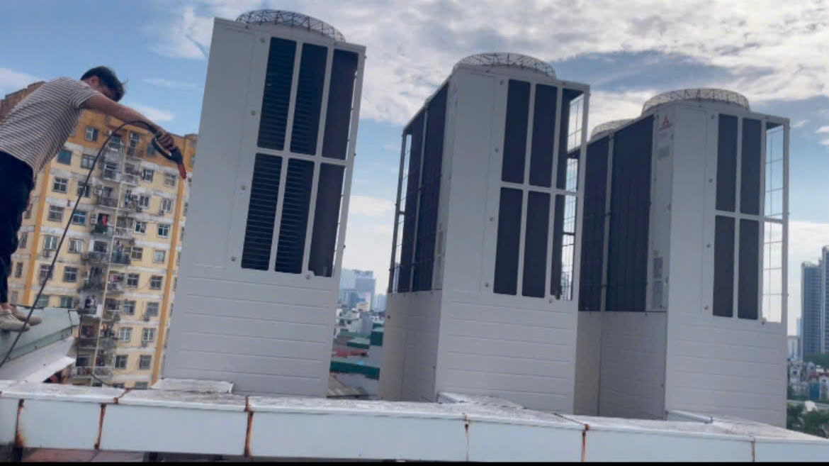 Vệ sinh lá nhôm: Sử dụng máy bơm cao áp xịt rửa các khe lá nhôm. Lưu ý xịt thẳng góc để tránh làm dập lá nhôm tản nhiệt.