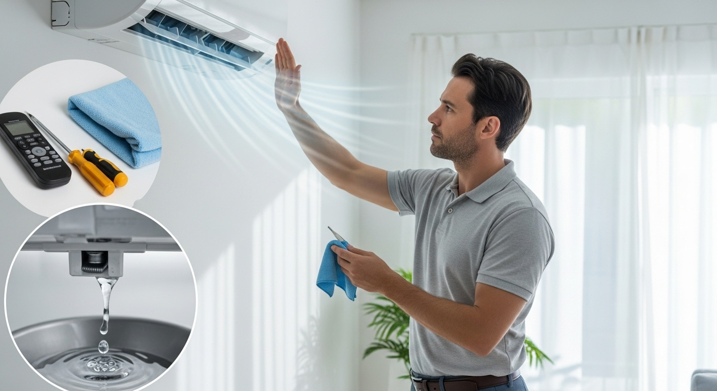 Người đang kiểm tra luồng gió lạnh và nước ngưng