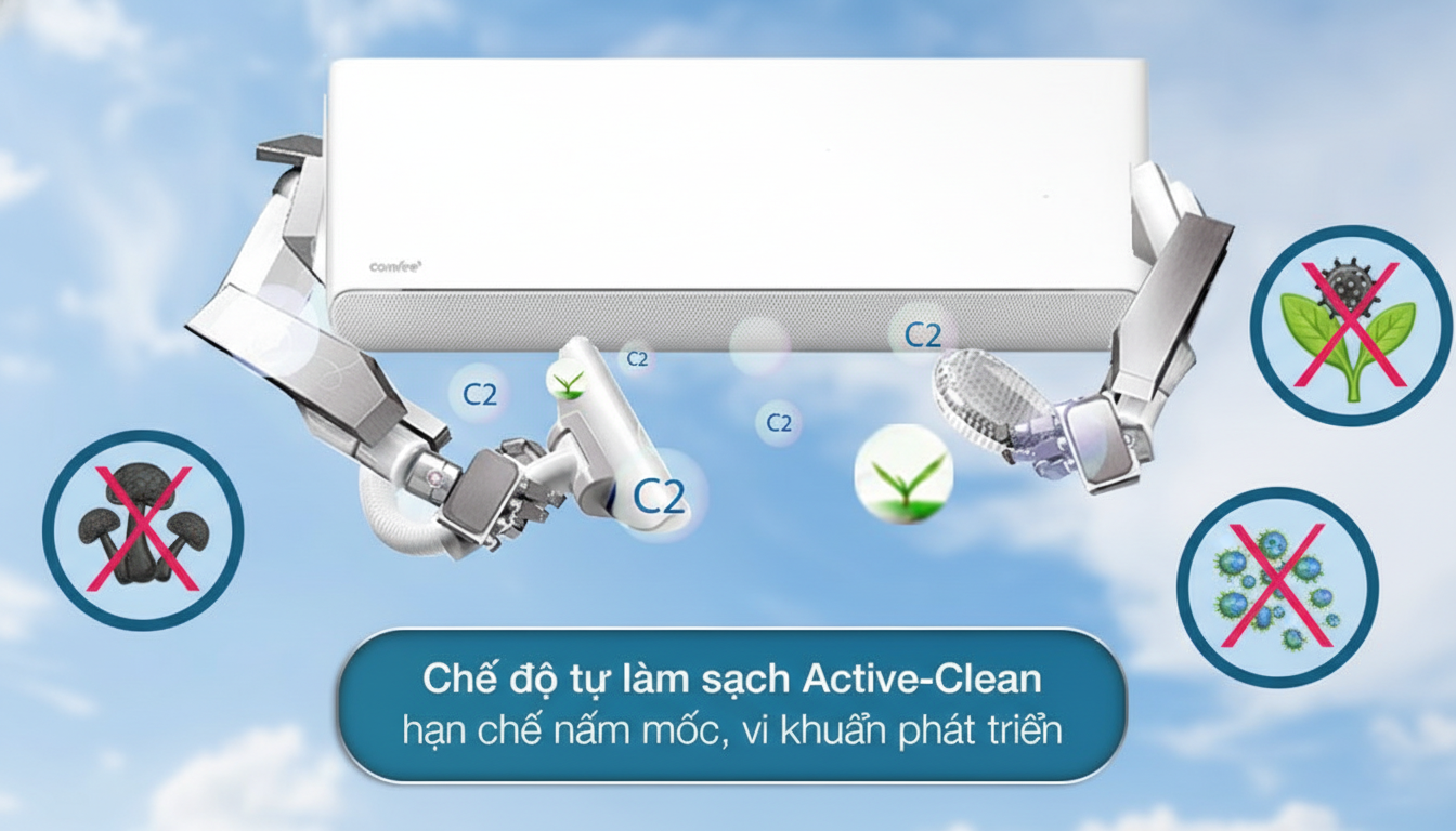 Trong cuộc sống hiện đại năm 2026, sức khỏe đường hô hấp trở thành ưu tiên hàng đầu của mọi gia đình. Điều hòa không chỉ đơn thuần là làm mát mà còn phải sạch. Hiểu được điều đó, Comfee đã tích hợp công nghệ Active Clean vào các dòng sản phẩm của mình, biến việc vệ sinh máy lạnh vốn phức tạp trở nên đơn giản chỉ bằng một nút bấm.