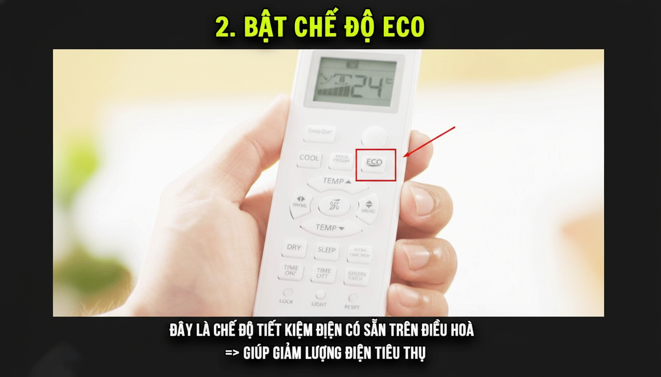 Thời điểm kích hoạt chế độ Econo phù hợp Sai lầm phổ biến nhất là bật Econo ngay khi phòng đang rất nóng. Vì Econo giới hạn công suất, nên nếu bật ngay từ đầu, phòng sẽ rất lâu mới mát. Cách đúng nhất là: Hãy dùng chế độ Powerful hoặc Cool để hạ nhiệt phòng xuống mức mong muốn, sau đó mới chuyển sang Econo để duy trì nhiệt độ đó một cách tiết kiệm.