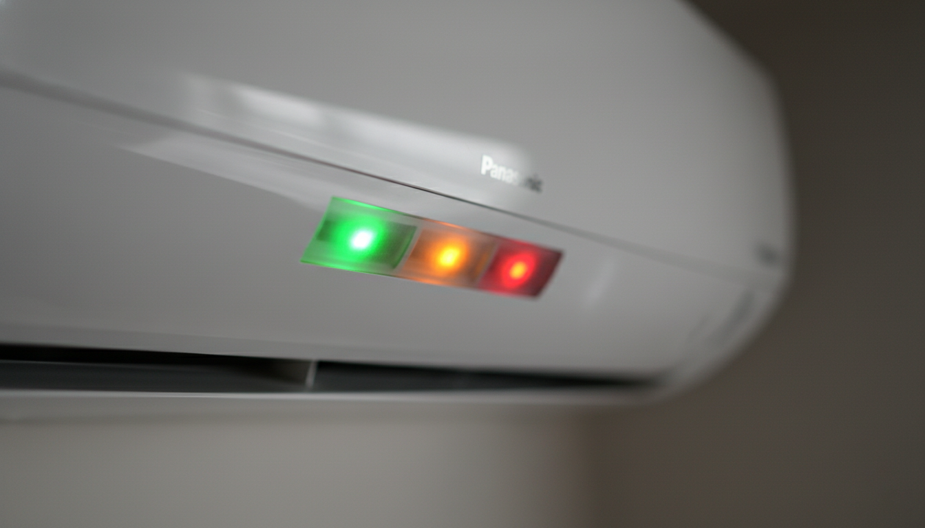 Cận cảnh đèn báo chất lượng không khí trên dàn lạnh Panasonic với các màu sắc xanh - cam - đỏ