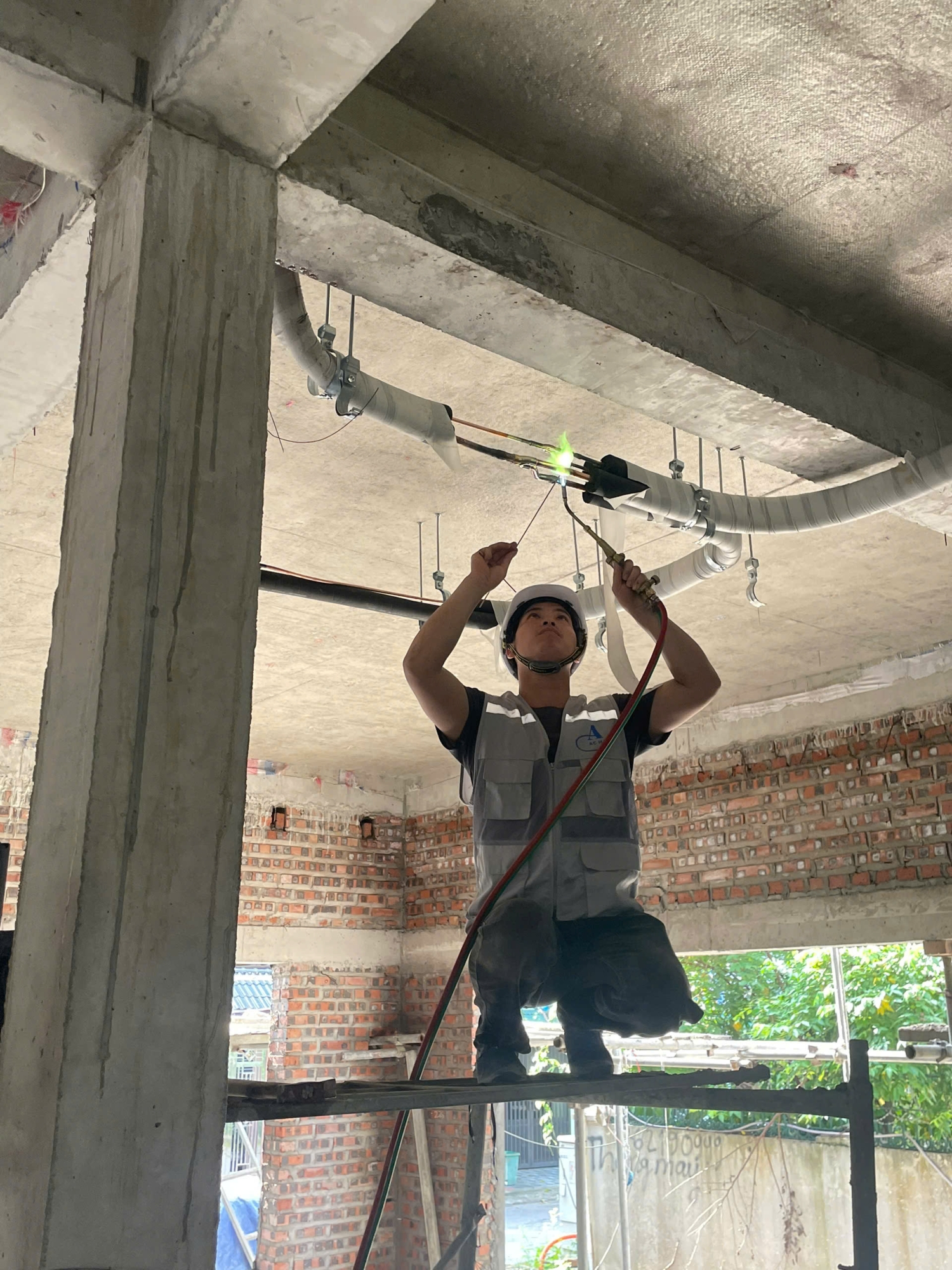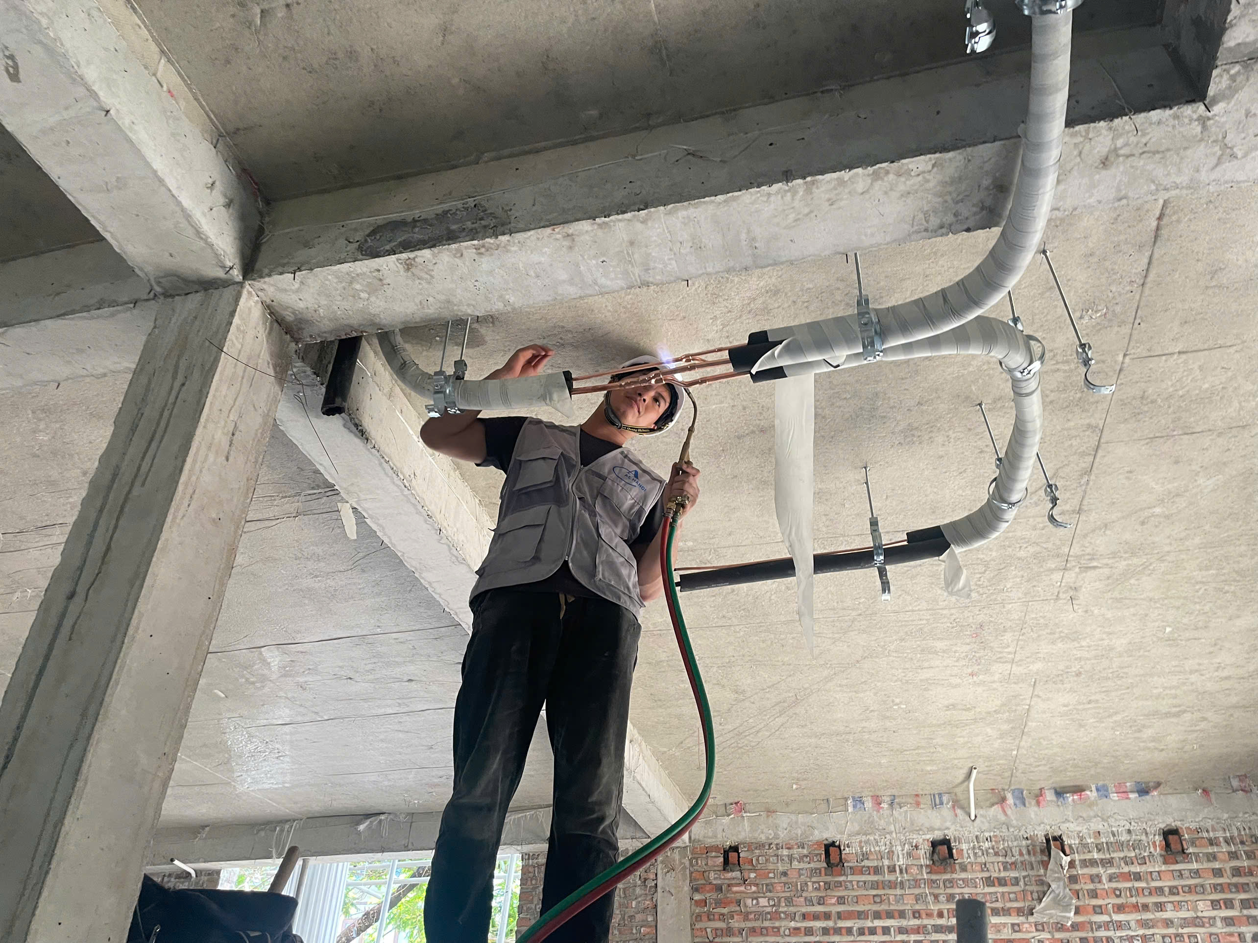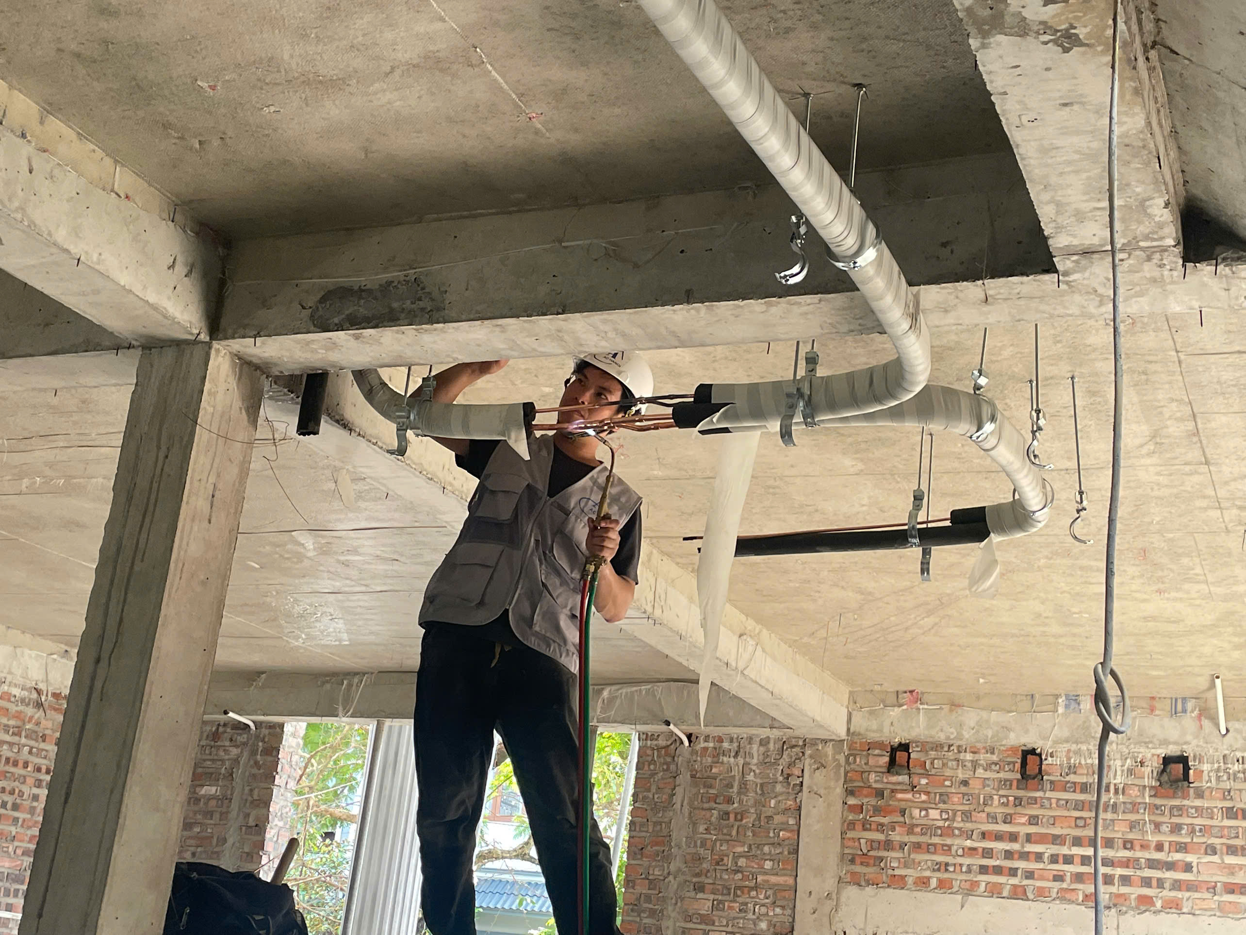 Công nhân ACHANOI đang thi công lắp đặt điều hòa tại dự án