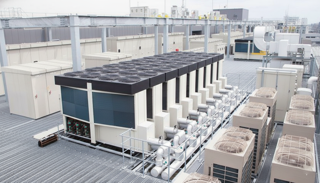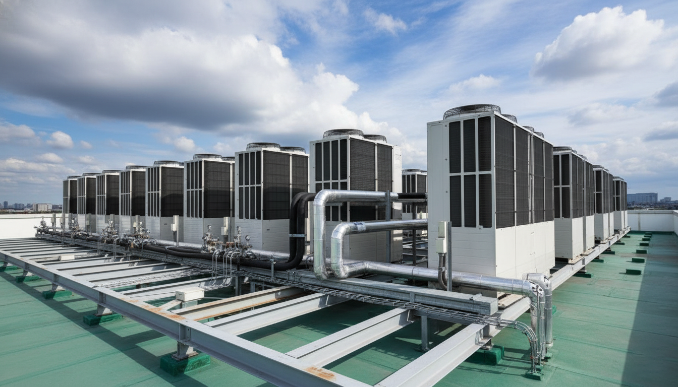 Hình ảnh tổng quan một hệ thống dàn nóng điều hòa công nghiệp.
