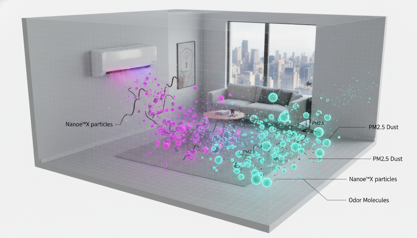 Việc nhận diện chỉ là bước đầu. Để giải quyết triệt để ô nhiễm, Panasonic kết hợp bộ đôi công nghệ độc quyền: nanoe™X thế hệ 3 và nanoe-G.