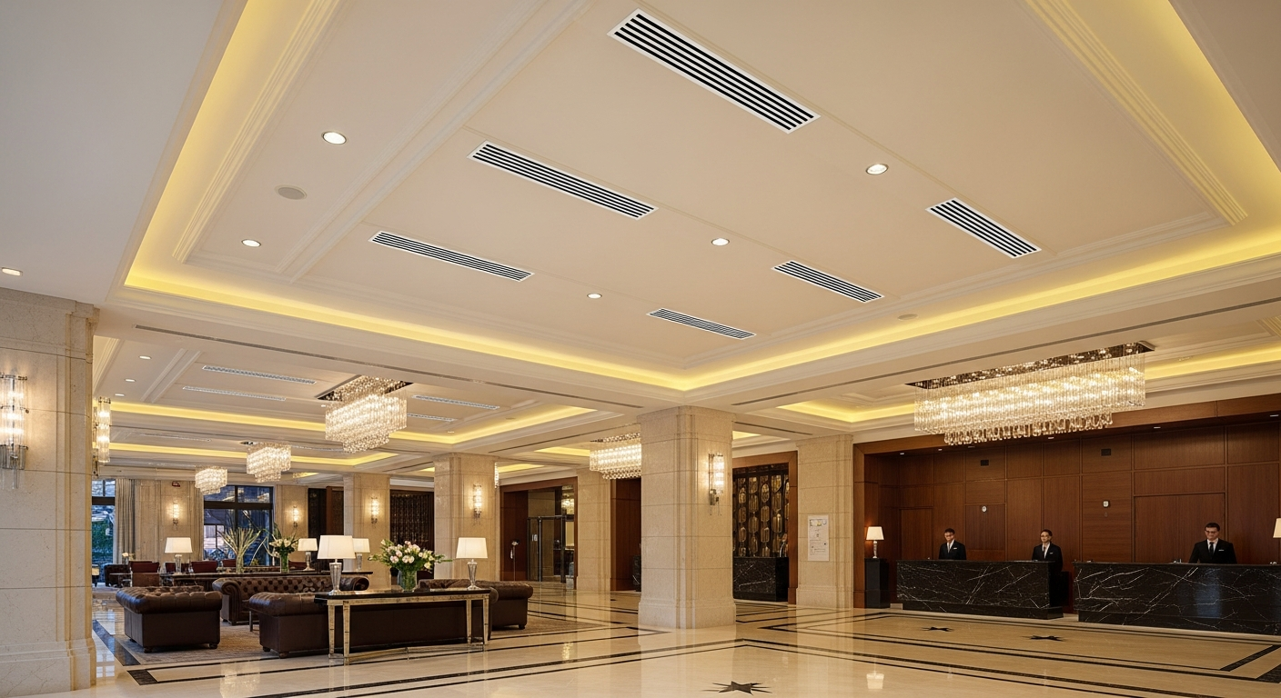 Ở cấp độ 5 sao, điều hòa không chỉ là tiện nghi mà là một phần không thể tách rời của trải nghiệm sang trọng. Yêu cầu về thẩm mỹ là tuyệt đối, và hệ thống phải là giải pháp trung tâm hoàn hảo.