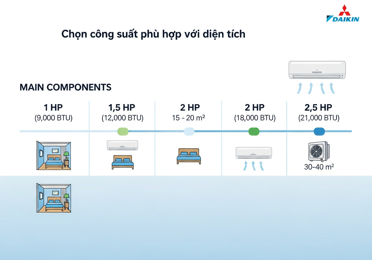 2.1. Chọn công suất phù hợp diện tích phòng