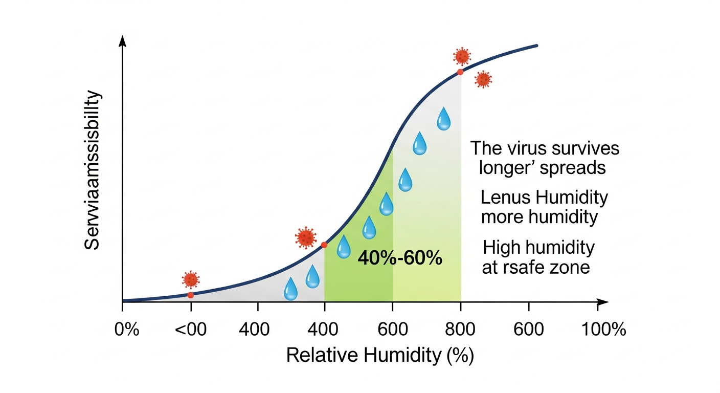 Kiểm soát Độ Ẩm (Yếu Tố Quan Trọng): Các nghiên cứu đã chỉ ra rằng virus cúm A hoạt động mạnh nhất trong môi trường có độ ẩm quá khô (dưới 40%) hoặc quá ẩm (trên 80%). Độ ẩm lý tưởng khoảng 40–60% giúp làm suy yếu khả năng tồn tại và lây lan của virus trong không khí.