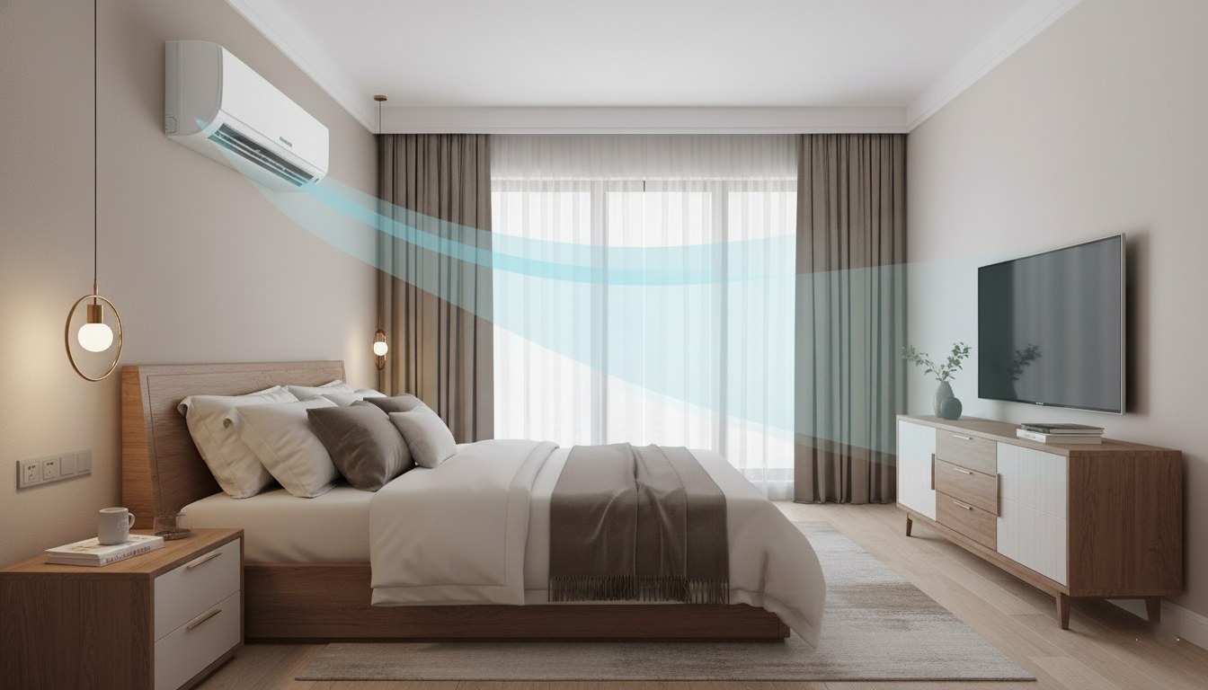 Kết hợp quạt gió: Sử dụng thêm một chiếc quạt điện nhỏ giúp không khí lạnh lưu thông đều khắp phòng nhanh hơn.