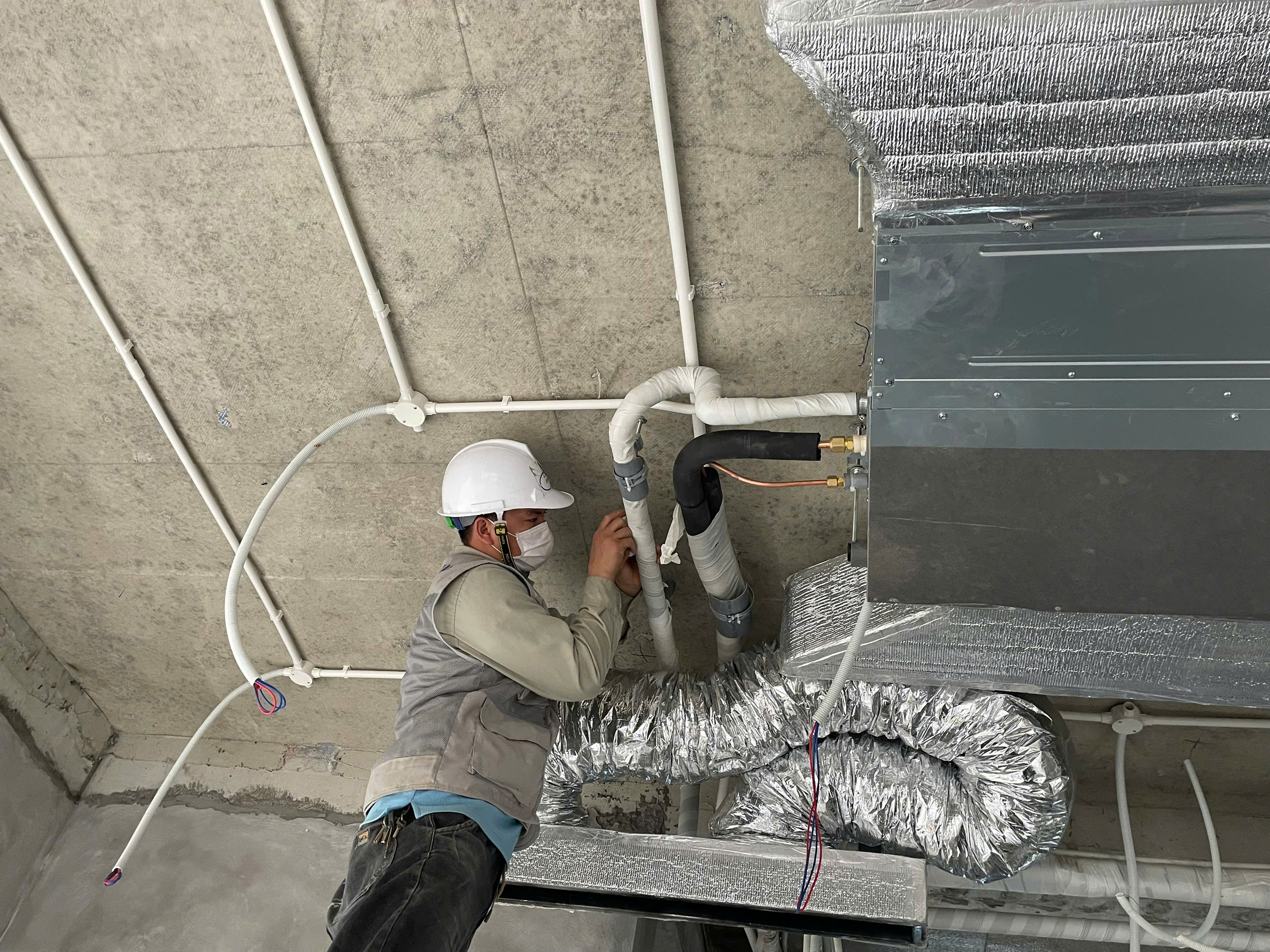 Hệ thống ống đồng, ống thoát nước ngưng được thi công gọn gàng, đảm bảo thẩm mỹ.