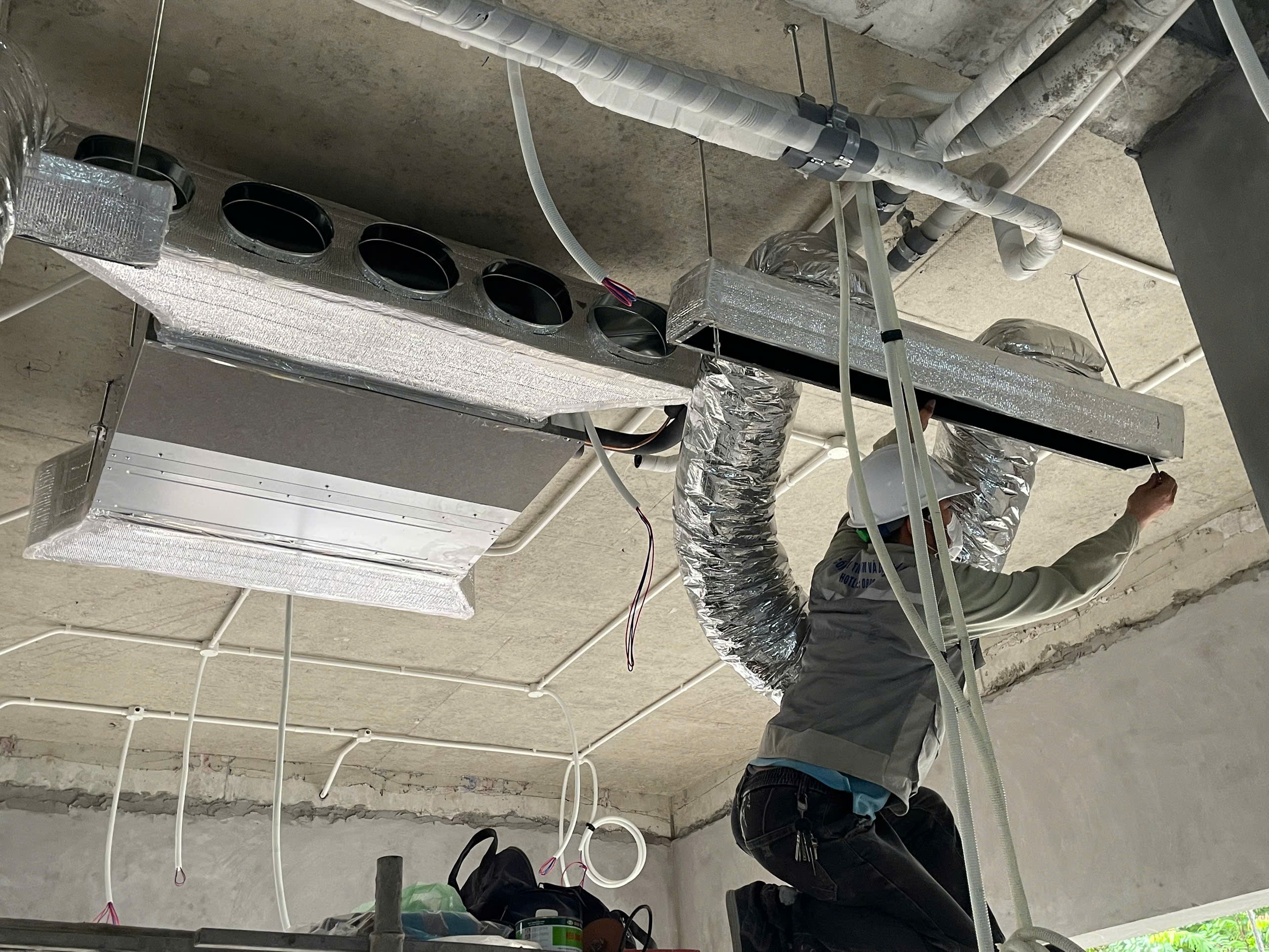 Đội ngũ kỹ thuật tiến hành đo đạc, khảo sát diện tích – hướng nắng – vị trí lắp đặt, từ đó tư vấn loại máy, công suất và vị trí tối ưu nhất cho không gian.