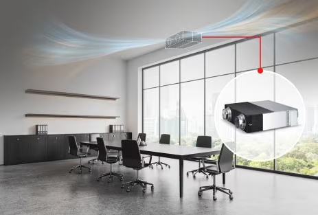 Không gian văn phòng hiện đại, dàn lạnh VRF LG âm trần, ánh sáng tự nhiên.