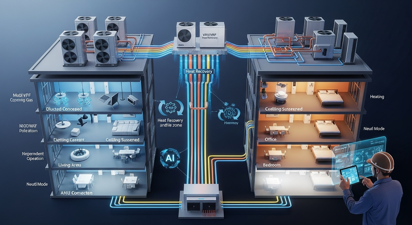 I.2. Hệ Thống Điều Hòa VRV/VRF: Tối Ưu Hóa Dòng Môi Chất Lạnh