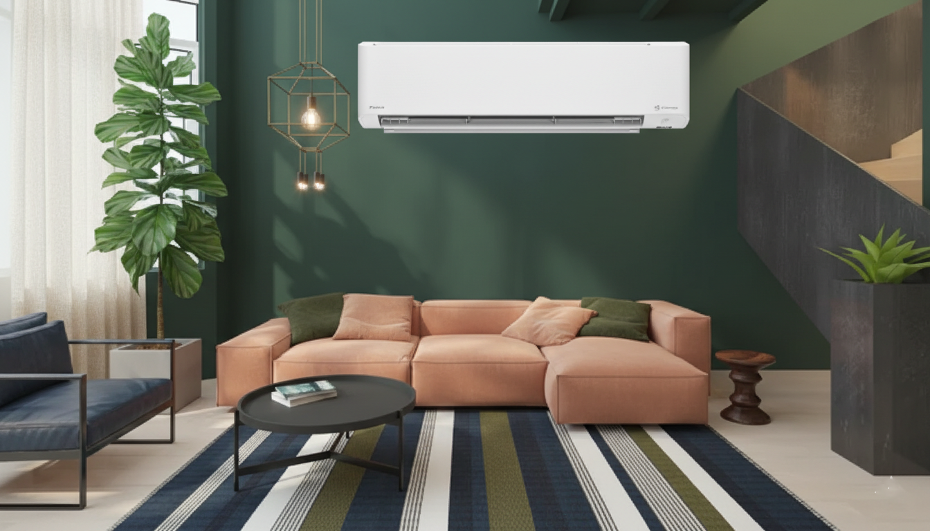Hình ảnh máy lạnh Daikin đặt trong phòng khách sang trọng