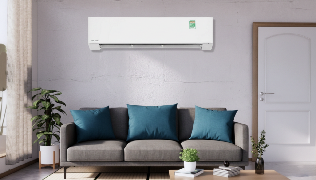 Hình ảnh máy lạnh Panasonic đặt trong phòng khách tinh tế